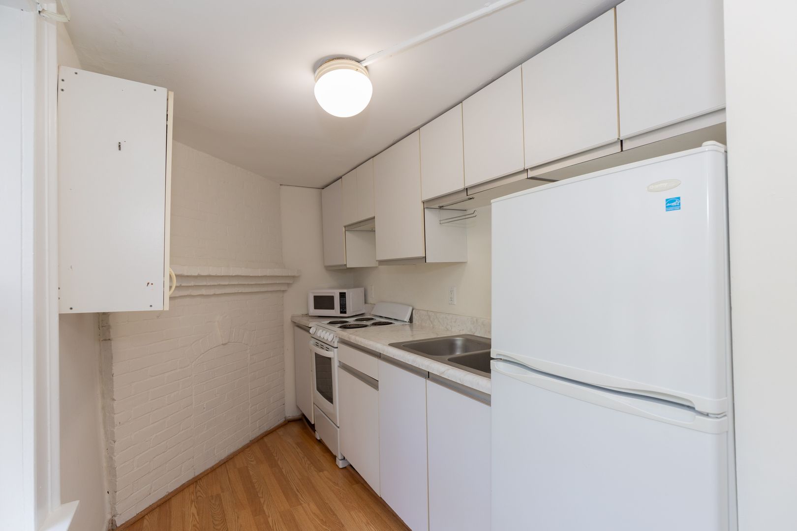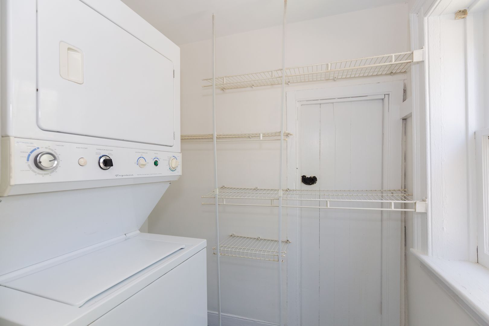 You are welcomed by a lovely living room with generous natural light and a decorative fireplace. The single wall kitchen is off of the living area, as well as the bedroom with full bath and closet with stacked washer and dryer.