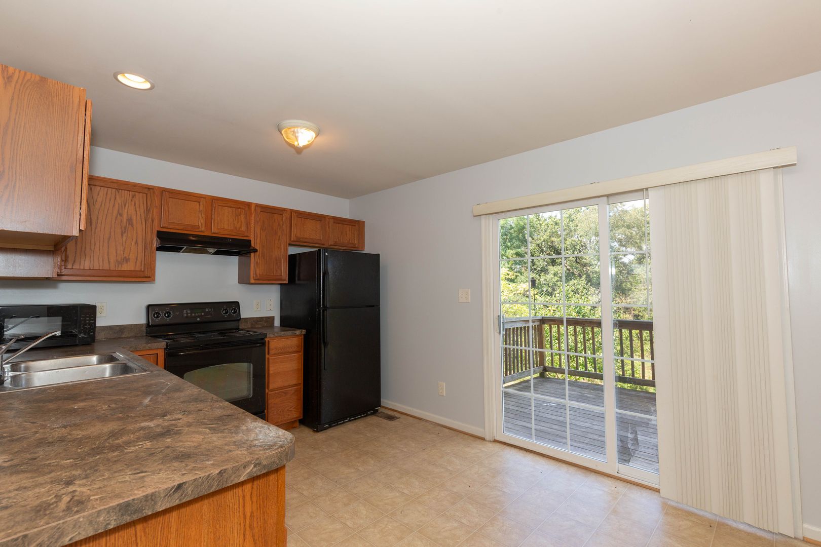 As you go upstairs to the main level you will be greeted by the naturally lit open floor plan with living room, additional half bath, and combination kitchen/dining room that has a slider door giving access to the rear deck that overlooks a wooded area and the unfenced rear yard - perfect for relaxing, fresh air, or outside entertaining!