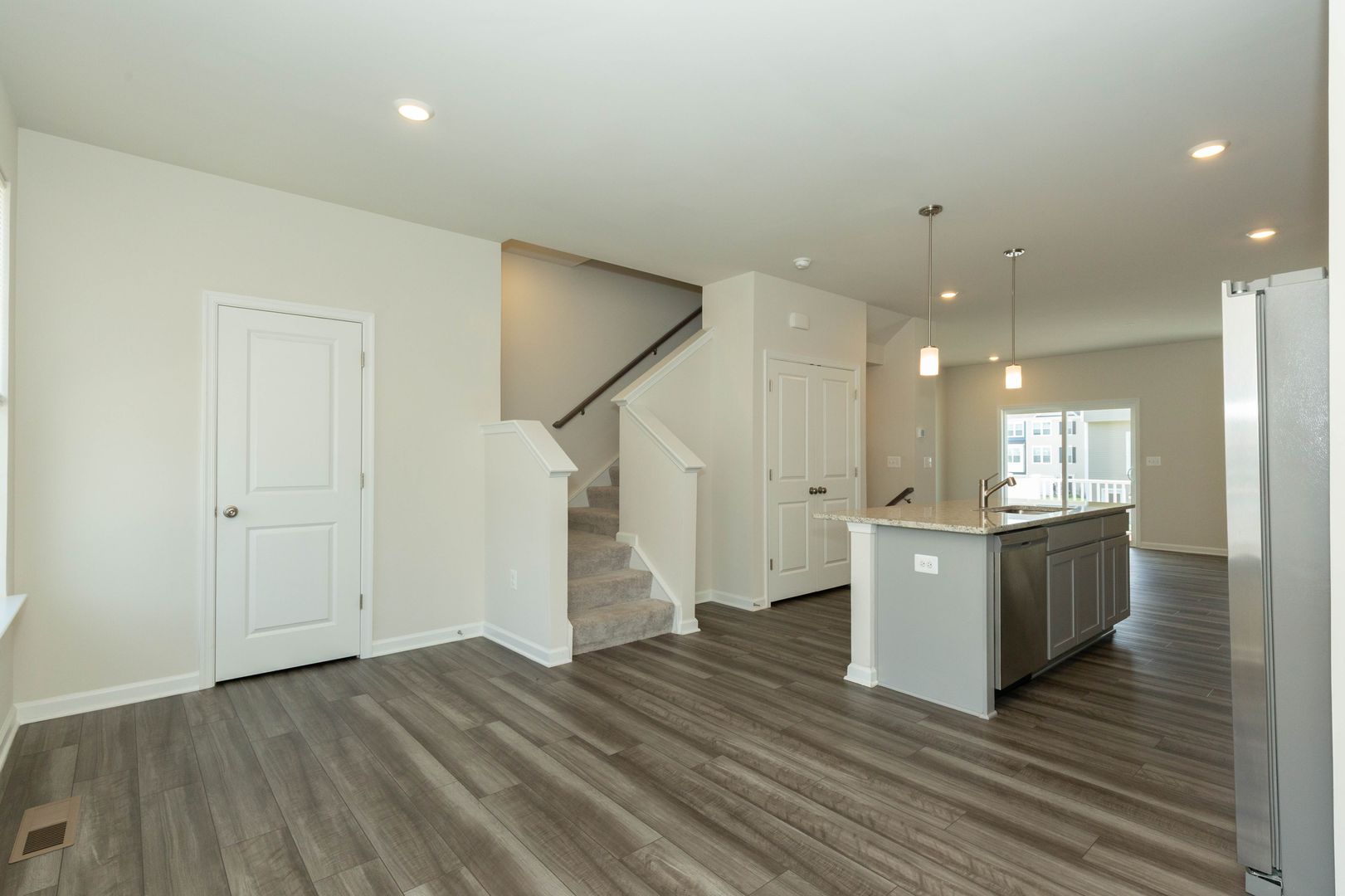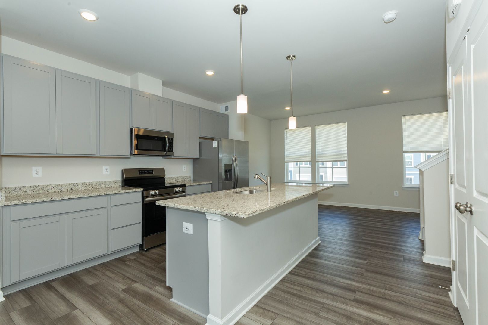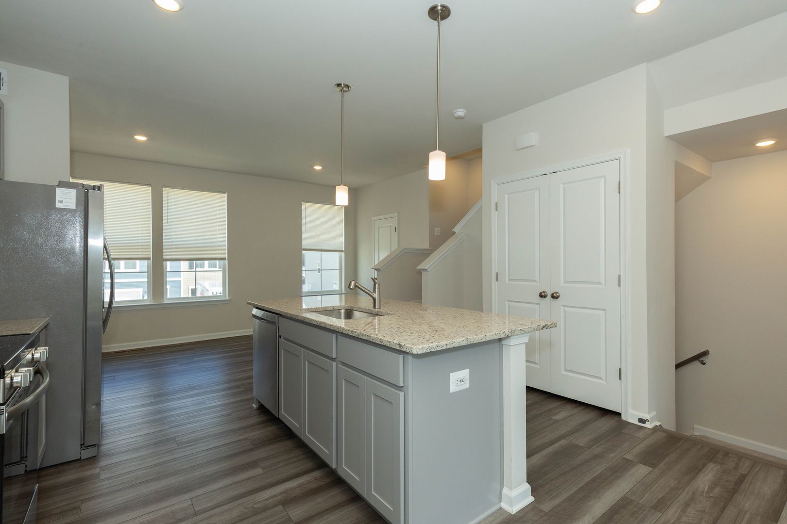 This spacious 3 bed, 2 full/2 half bath townhome is a must see! Enjoy the main level’s open floor plan with LVP flooring and recessed lighting throughout; living area with access to the rear deck, eat-in kitchen with stainless steel appliances, granite counter tops, and large island; dining area, and half bath.
