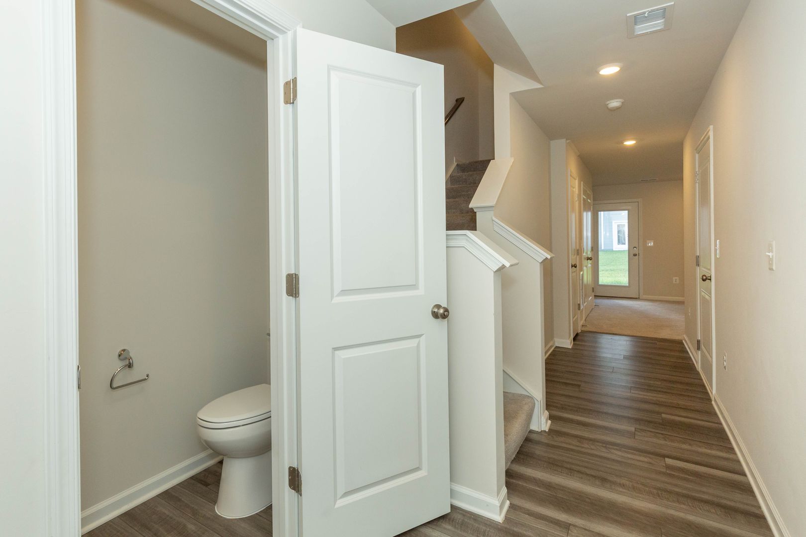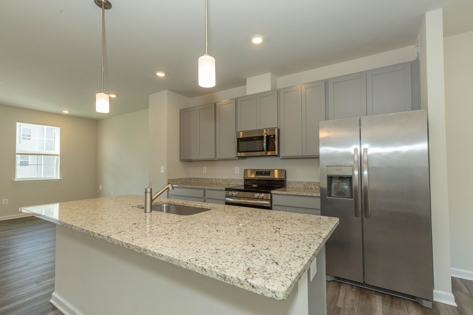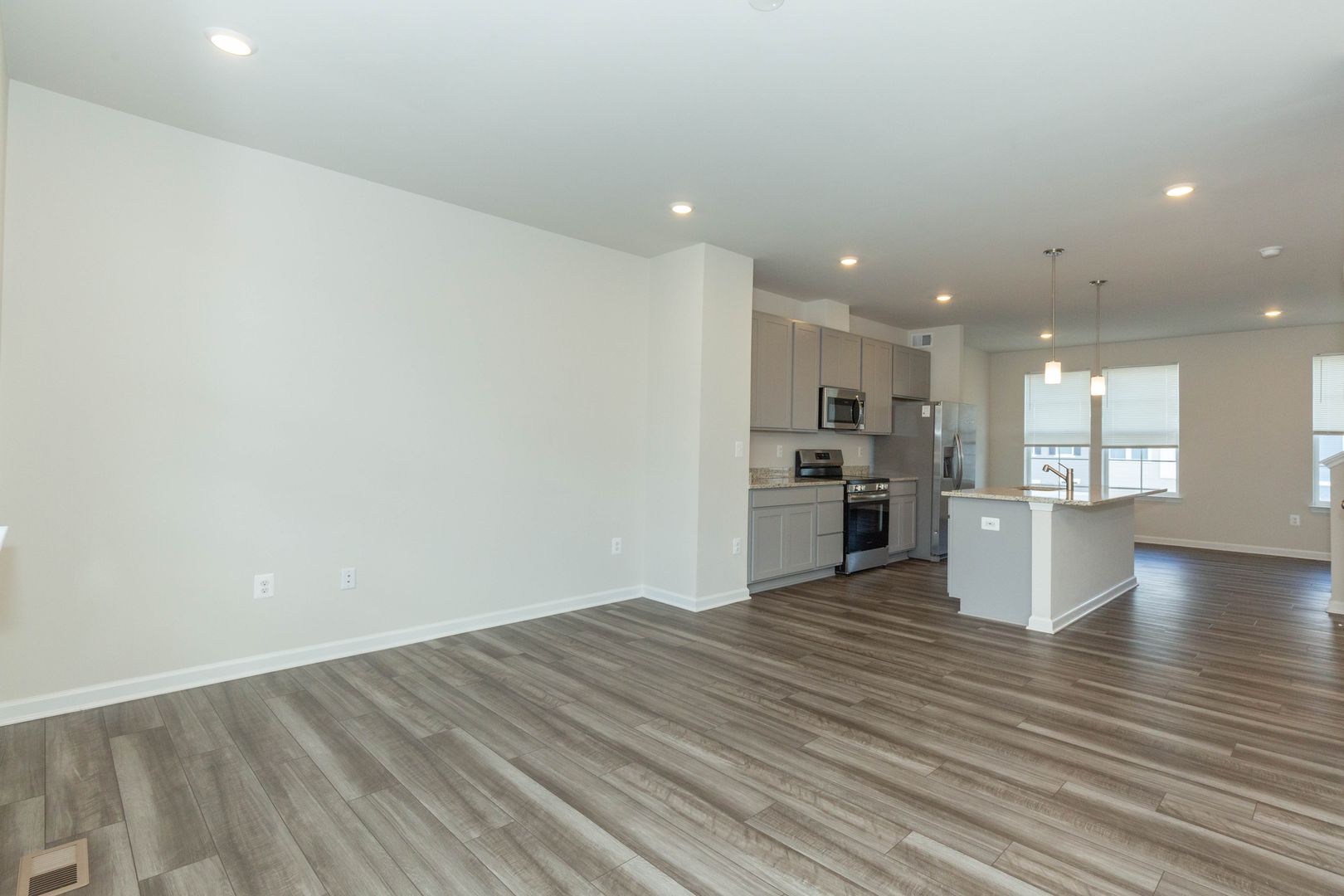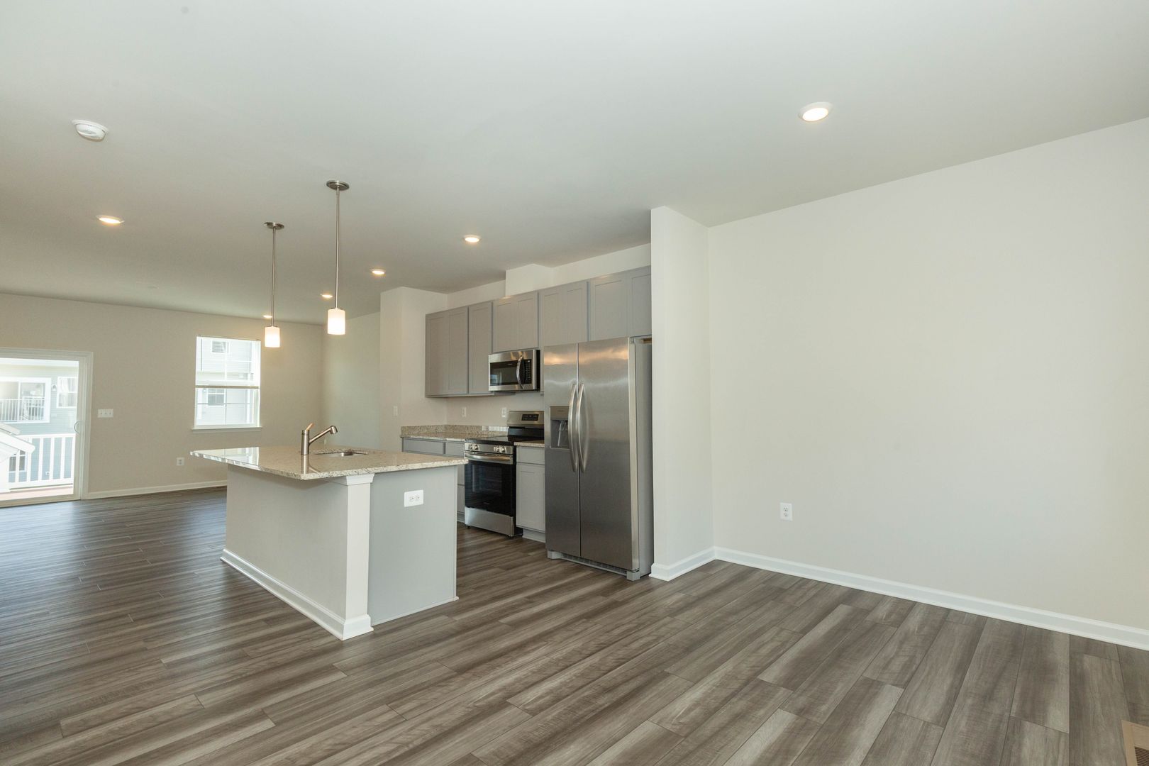 This spacious 3 bed, 2 full/2 half bath townhome is a must see! Enjoy the main level’s open floor plan with LVP flooring and recessed lighting throughout; living area with access to the rear deck, eat-in kitchen with stainless steel appliances, granite counter tops, and large island; dining area, and half bath.