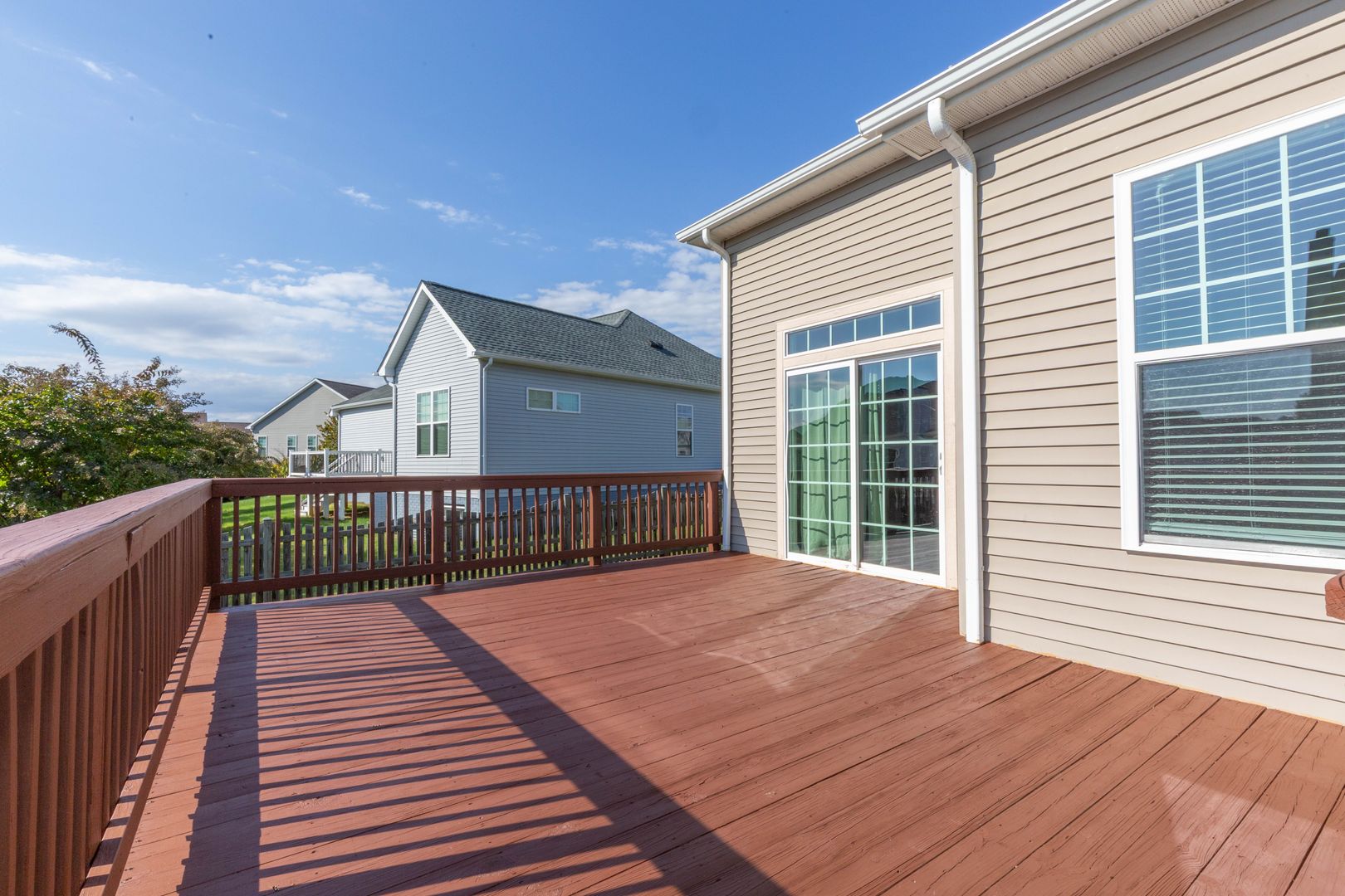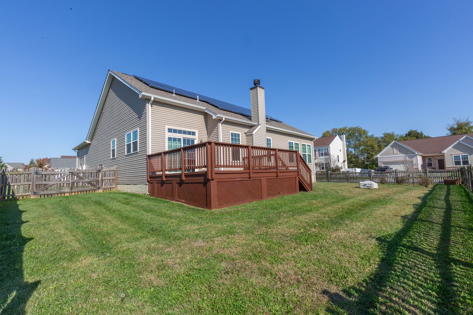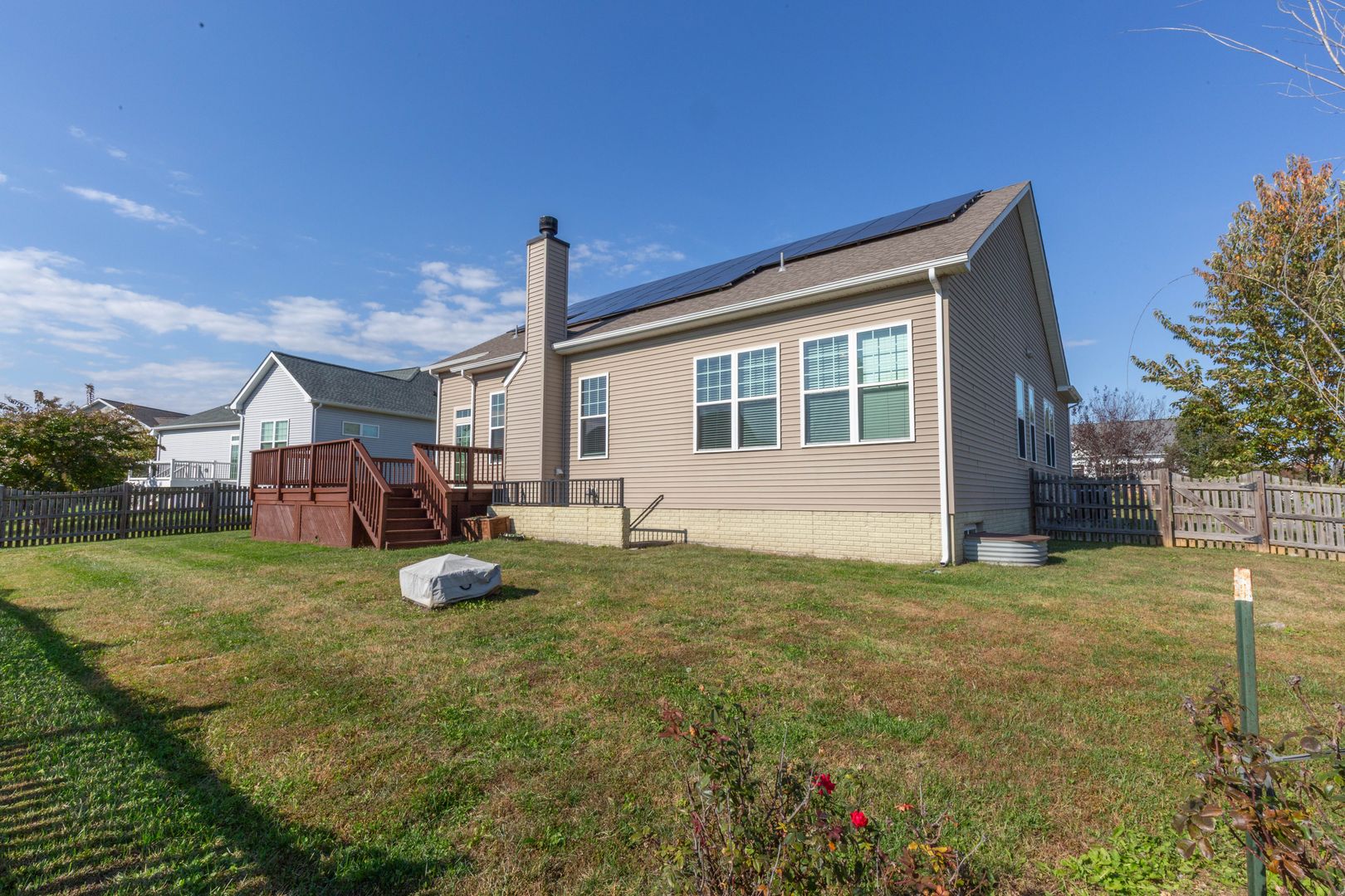 You are welcomed by the hardwood floors throughout the bright and airy open-concept main level featuring a cozy wood-burning fireplace in the living room; kitchen with granite countertops, ample cabinetry, and a large center island; dining area with access to the deck and fenced rear yard; primary suite with walk-in closet and full bath with dual vanity; two additional bedrooms with walk-in closets; an additional full bath; and a dedicated laundry room with direct access to the two-car garage.