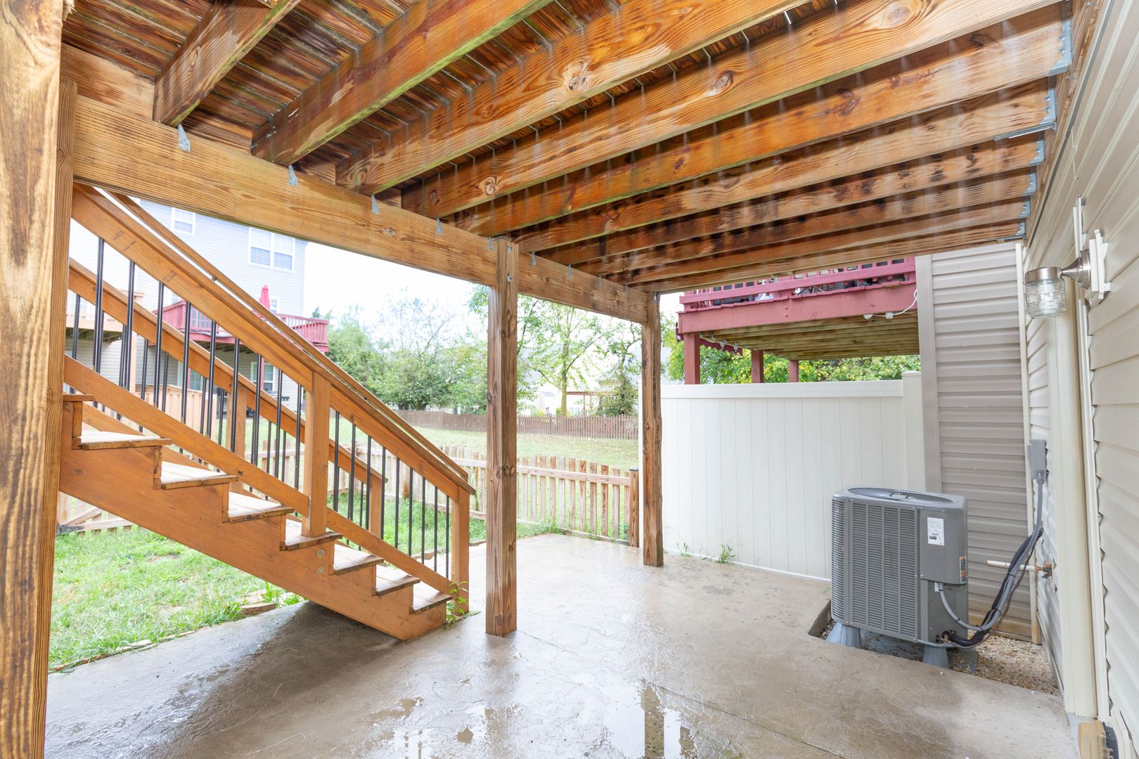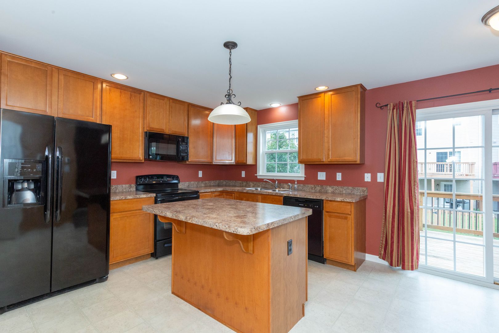 Enjoy the warmth of the main level’s open floor plan with carpeted living room; half bath; eat-in kitchen with island and access to the rear upper deck, lower patio, and fenced rear yard - perfect for year-round entertaining.
