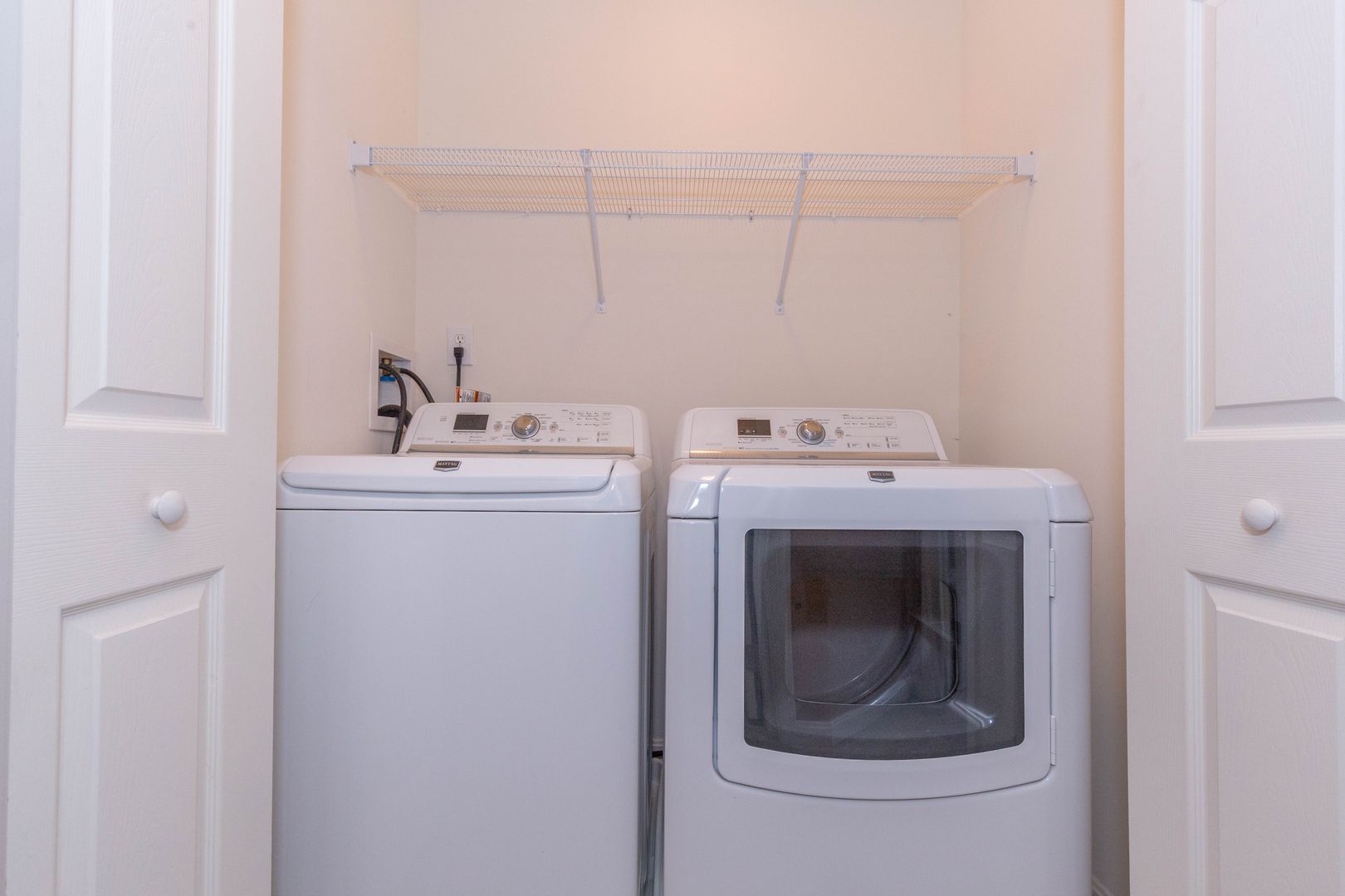 The upper level features a generous primary bedroom suite with walk-in closet, full shower, dual vanity; two additional bedrooms, washer and dryer, and an additional full bath.